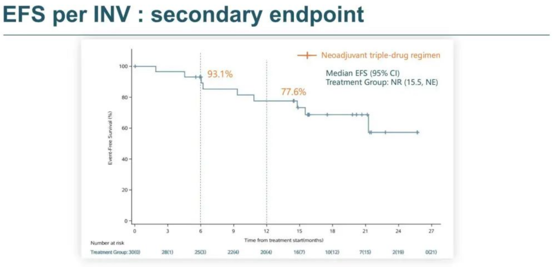 替莫唑胺联合阿帕替尼及卡瑞丽珠单抗的三药联合方案已在晚期肢端黑色素瘤一线治疗中取得了较好效果(ORR 64%,中位PFS 18.4个月)[5]。同样由该团队主导的CAP 03-NEO II期研究创新性地采用两阶段设计,评估了卡瑞利珠单抗联合阿帕替尼及替莫唑胺三药联合方案在可切除II/III期肢端型黑色素瘤新辅助治疗中的疗效。研究纳入30例患者(II期11例,III期19例),28例接受手术的患者中病理缓解率达57.1%(含7例pCR和5例near-pCR),III期患者的MPR率显著高于II期(42.9%vs 36.7%)。中位随访18.1个月显示,12个月EFS率达77.6%(III期患者75%),达到MPR的患者1年EFS率为100%。